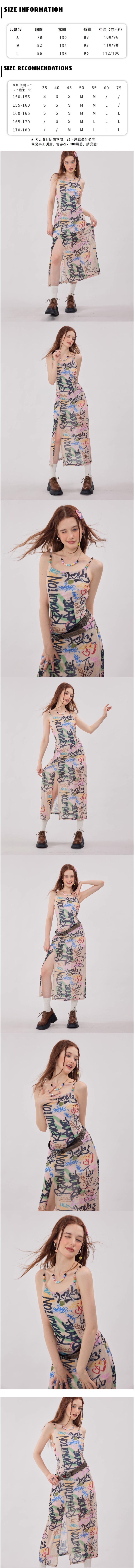 Graffiti-print waist-length slip dress
