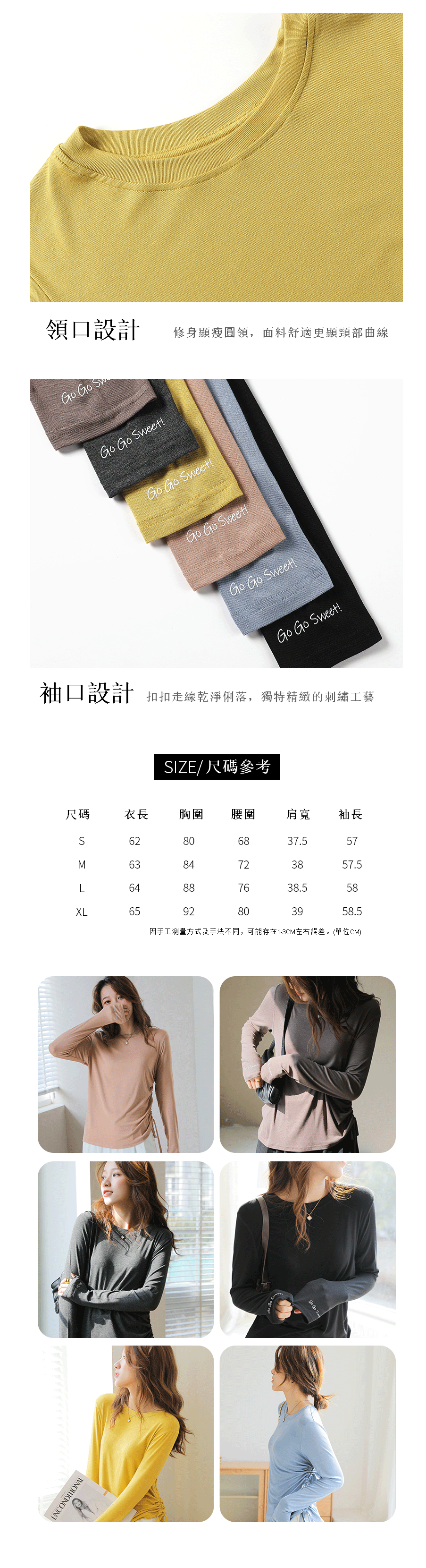 Long sleeve T-shirt, round neck side drawstring undershirt