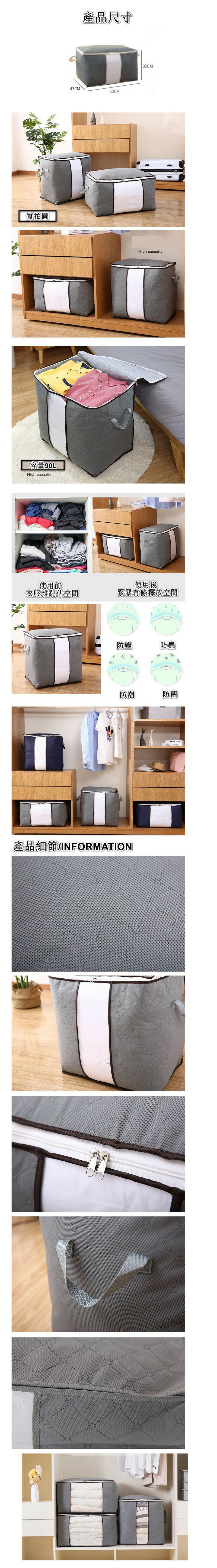 熱賣灰色收納袋 1件 整理袋 衣服被子搬家行李打包袋 超大容量衣物防潮儲物袋【灰色橫款(60X43X35CM)】