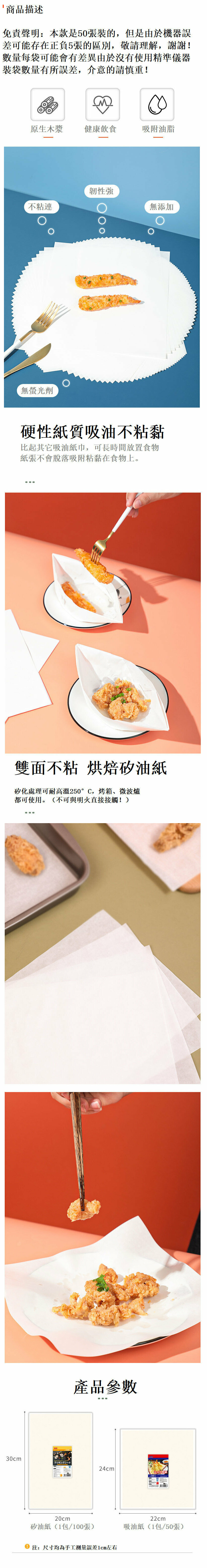 爆款[一包裝]多用途料理食物吸油紙 烘焙油紙 50紙入 20 x 24 cm