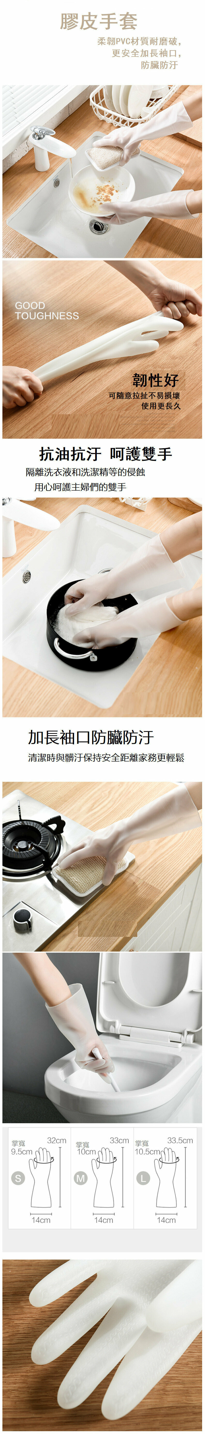 熱賣[一雙]耐用高韌度家居手套/洗碗膠手套 (純白/大碼)