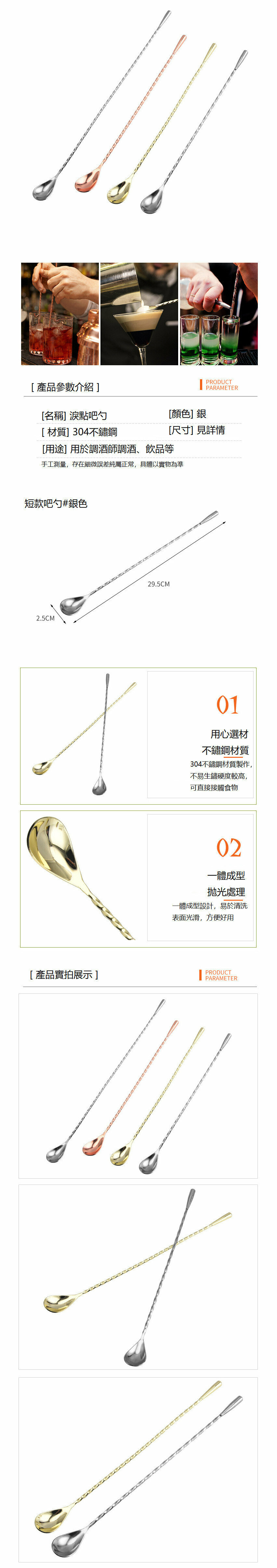 新款1件29.5cm 長-304不銹鋼-細螺絲紋吧匙-鍍銀-不銹鋼攪拌匙棒 飲料調酒棒 長飲攪攪棍棒