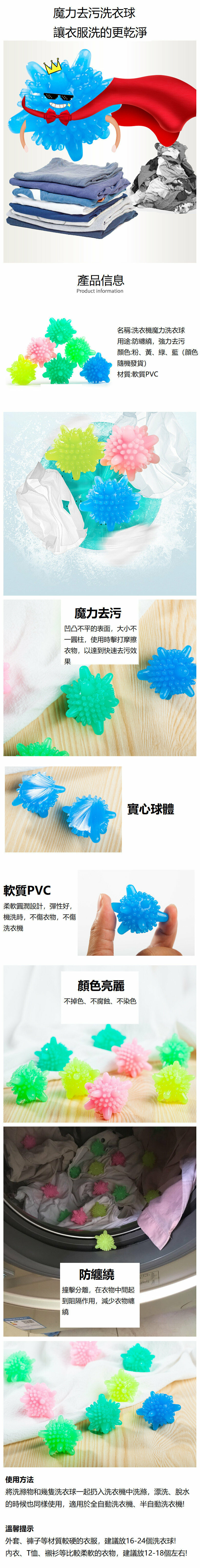 熱推[10個裝] (顔色隨機發貨) PVC魔力洗衣機衣物清潔球 去汙防纏繞 衣服護洗球