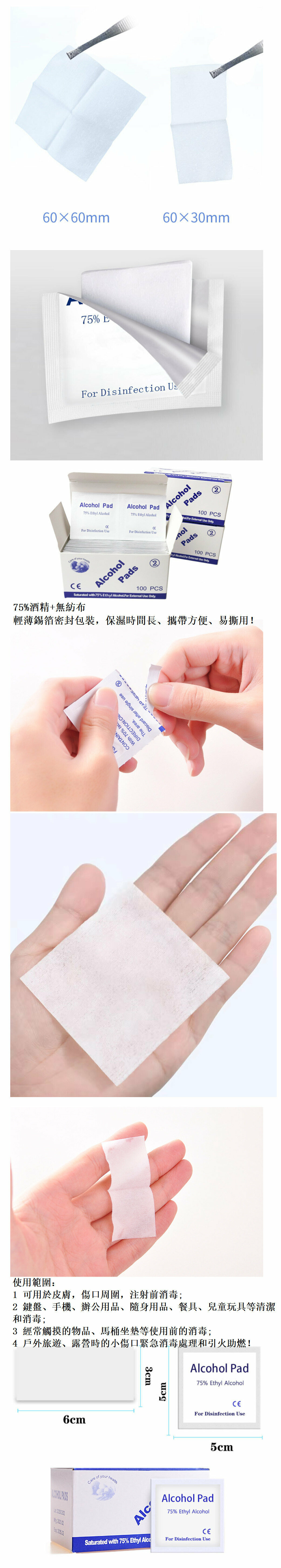 熱賣2盒酒精消毒濕紙巾 (規格6*3cm 100片/盒) 消毒棉片,消毒濕巾,消毒酒精紙