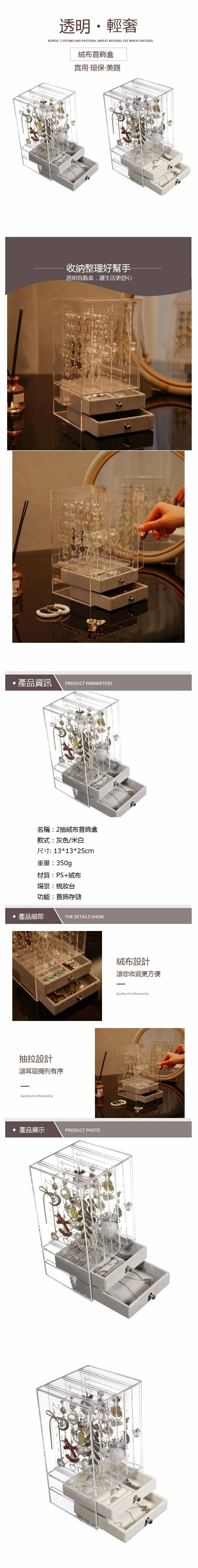 熱推2抽屜絨布珠寶首飾收納盒(灰色)
