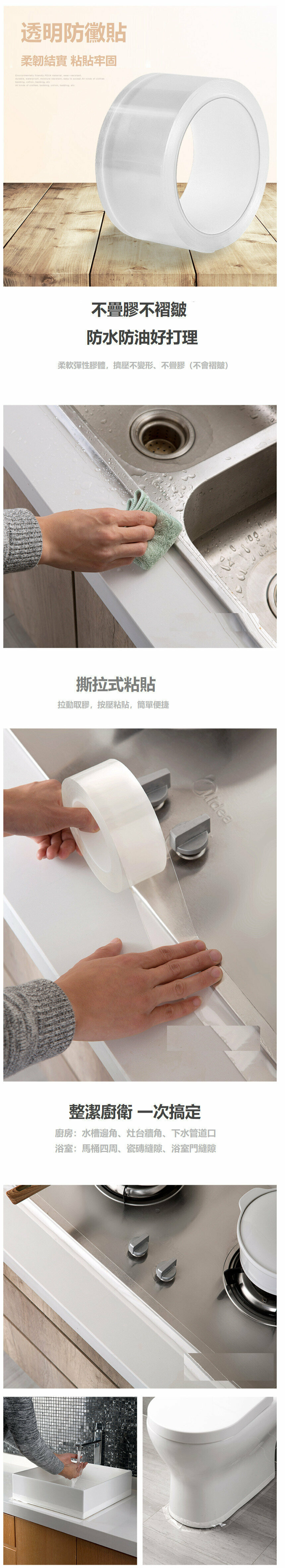 熱賣【2卷裝】透明防黴防水縫隙貼【規格透明亞克力膠帶【5釐米*3米】防水貼