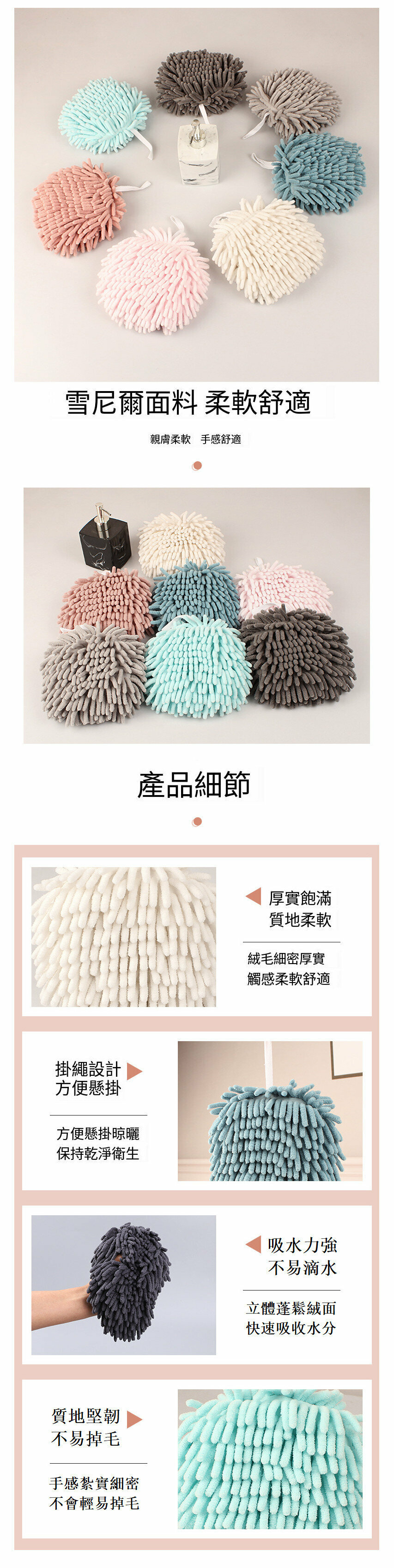 激抵(2件裝)乾手抺布球 擦手巾 抺手巾 柔軟抺布 可掛式乾手布 【莫蘭色+淺灰色】