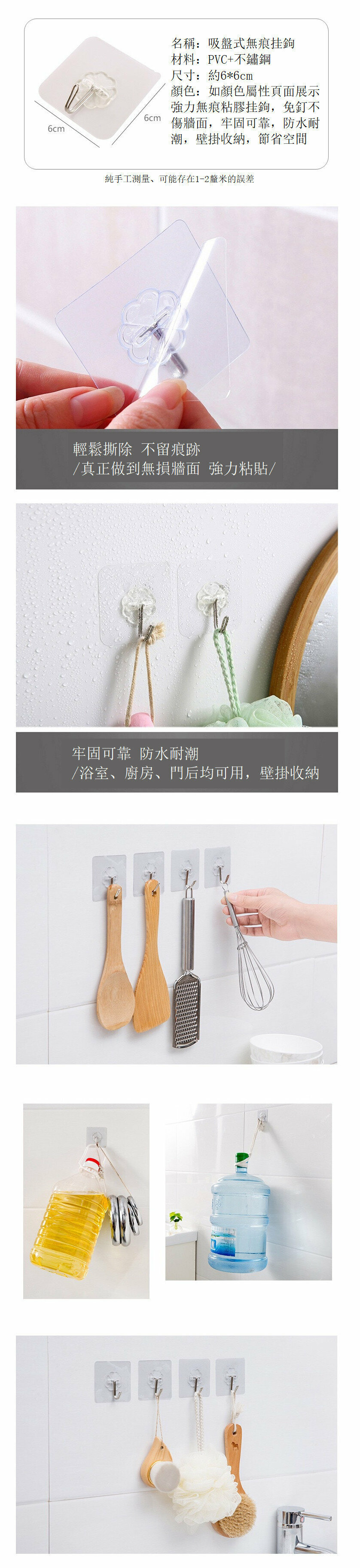 爆款20件超強力無痕透明實用黏膠掛鈎【規格6×6cm透明掛鉤】