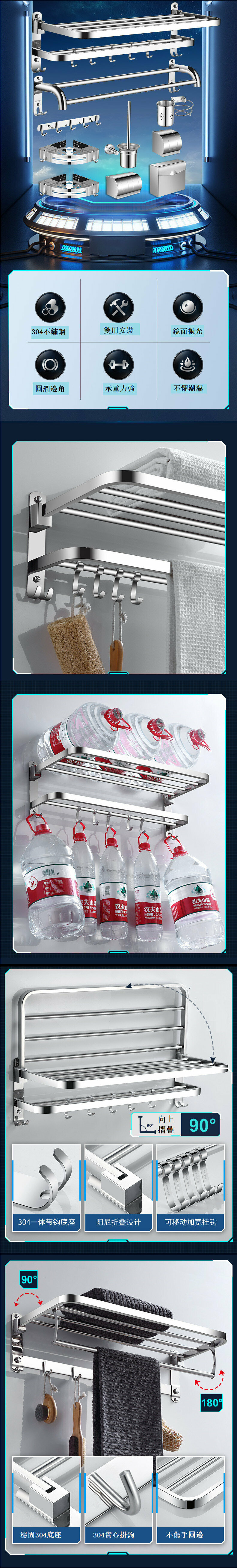 熱賣304不銹鋼免打孔/打孔兩用浴室置物架 毛巾掛架(58cm)