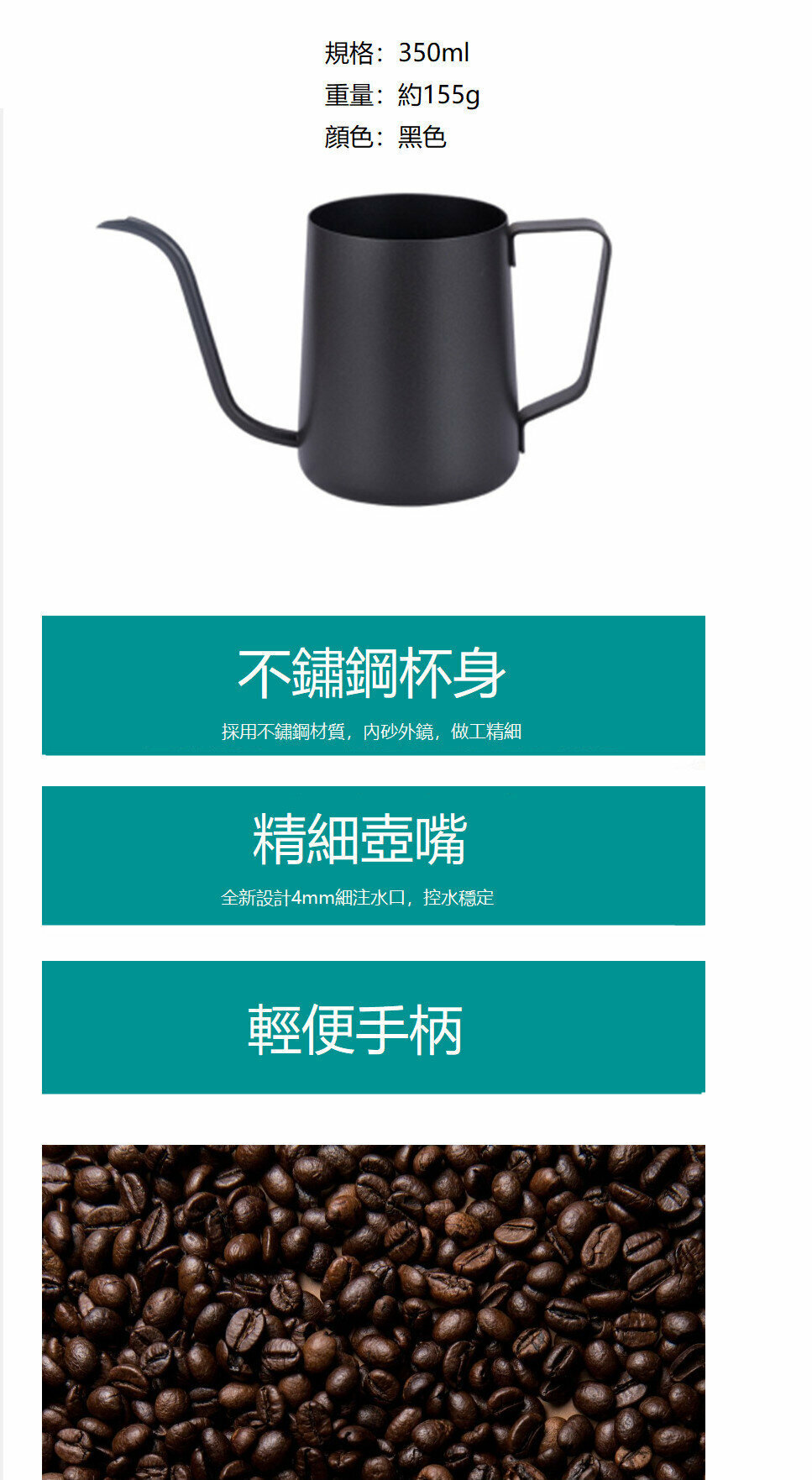 爆款[350ml/黑色] 長嘴細口手沖咖啡壼 304食品級不銹鋼