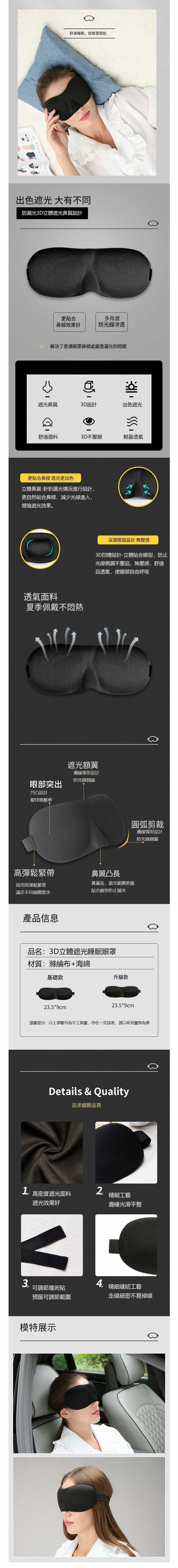 新款3D眼罩【升級款-寶藍色】3D立體造型遮光眼罩【一個】