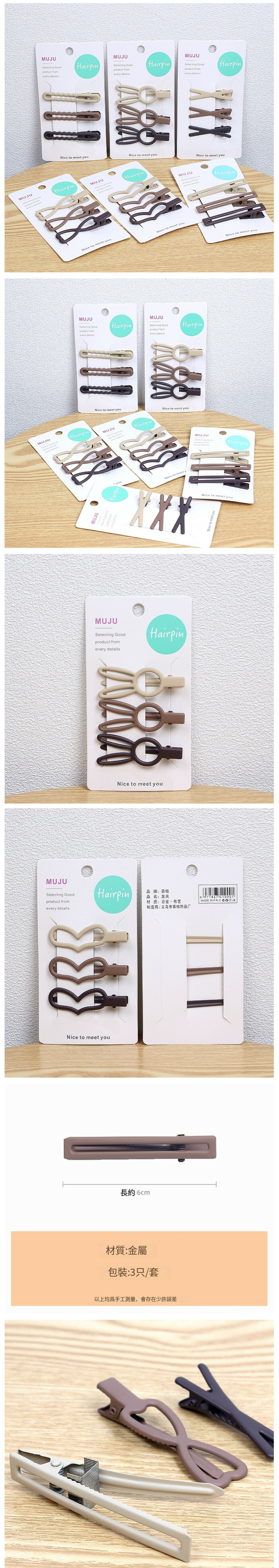 新款(3隻/套)簡約少女劉海髮夾(1#方形)