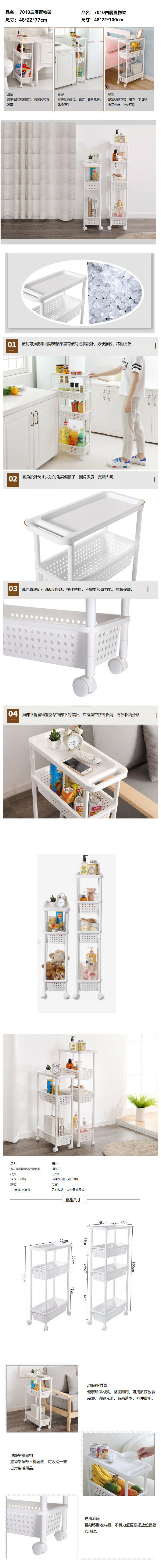 新款4層塑膠窄身組合層架連轆(7010四層置物架)
