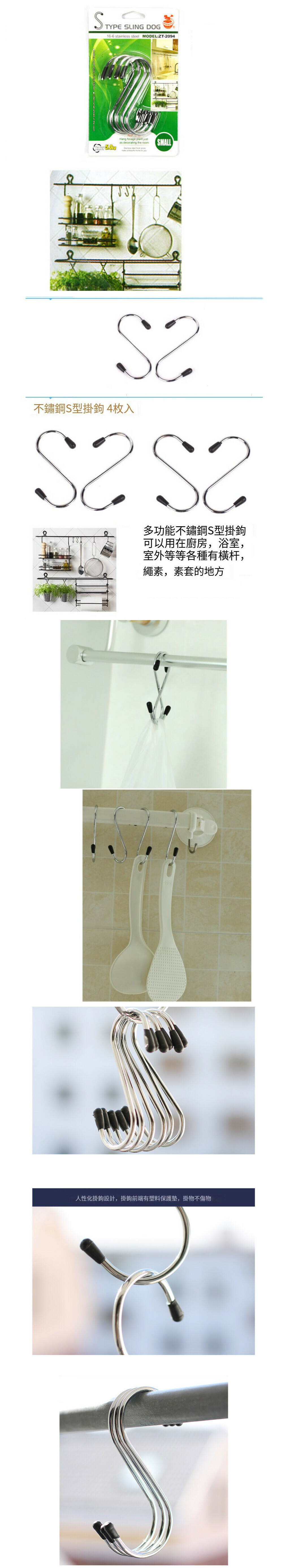 激抵(4個裝 長8.5cm)多功能不鏽鋼無痕跡S型掛鈎