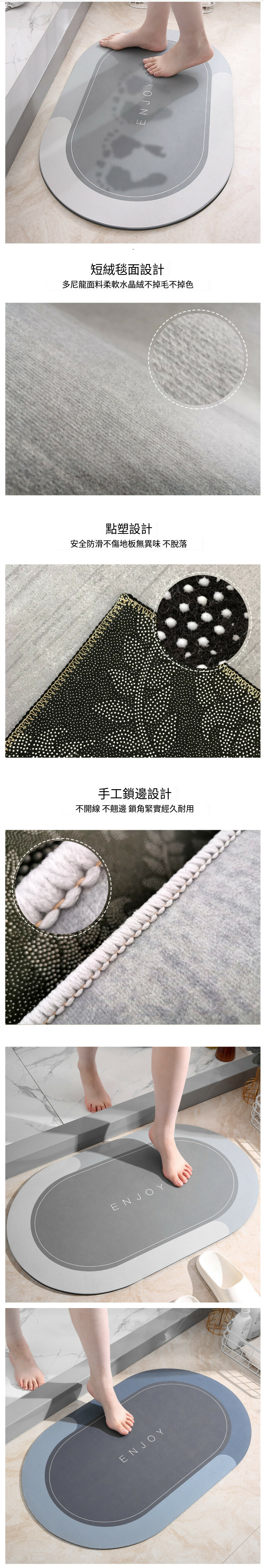 熱賣(40*60CM)吸水水晶絨地墊 門墊 可機洗腳墊 防滑耐磨地毯(淺灰方形)
