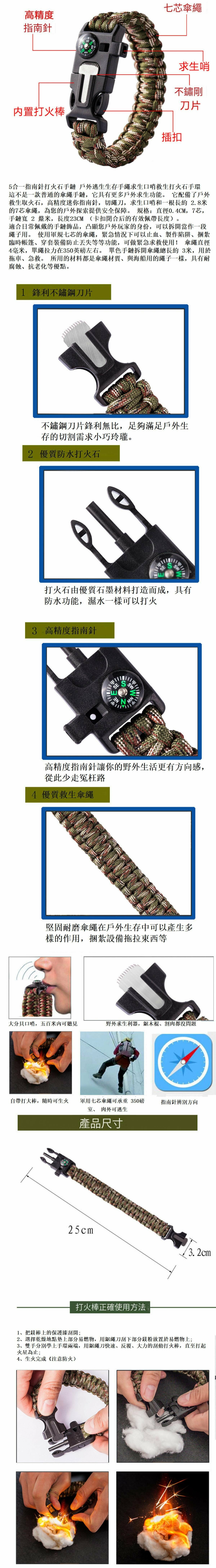 熱賣5合1多功能野外求生手帶【桔+黑】