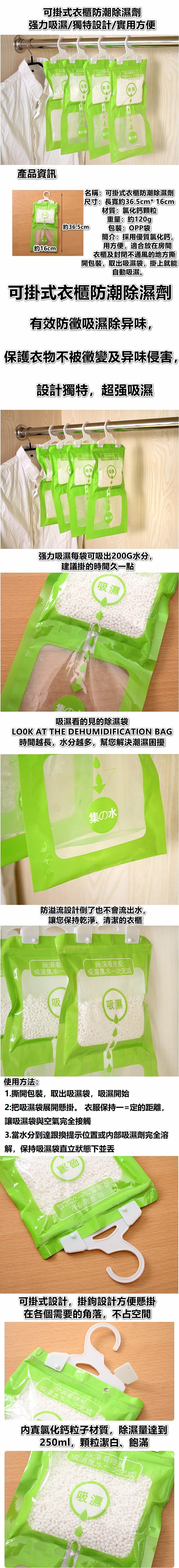 激抵[5包裝]可掛式衣櫃防潮吸濕袋