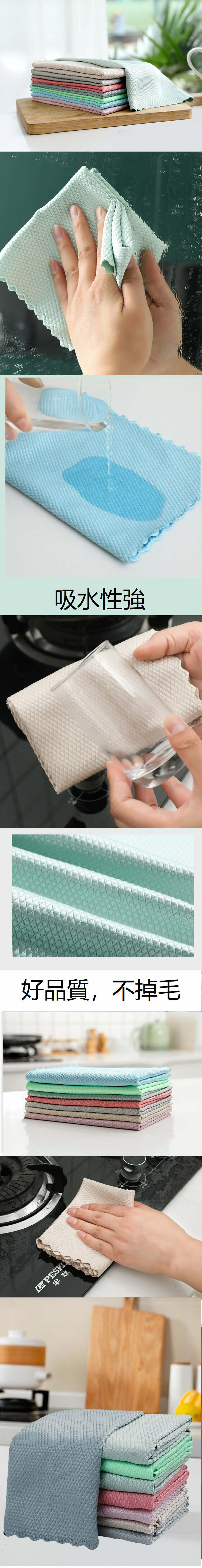 熱賣[5條裝/ 25*25cm/ 顏色隨機] 魚鱗布吸水不易掉毛抹車汽車用品擦玻璃杯碗桌鏡子無痕魚鱗抹布廚房擦桌清潔巾