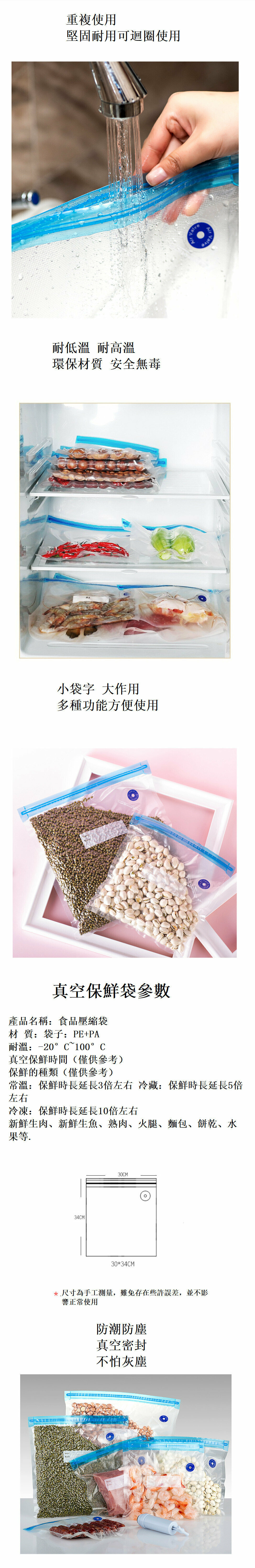 熱賣5件裝食物保鮮抽真空袋 (藍色拉鍊30*34cm)不含氣泵