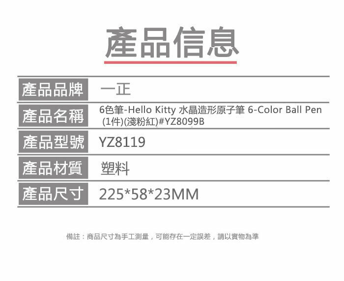 爆款6色筆-Hello Kitty 水晶造形原子筆 6-Color Ball Pen (1件)(淺粉紅)