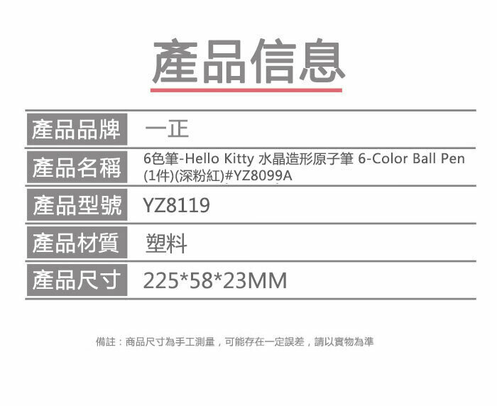 爆款6色筆-Hello Kitty 水晶造形原子筆 6-Color Ball Pen (1件)(深粉紅)