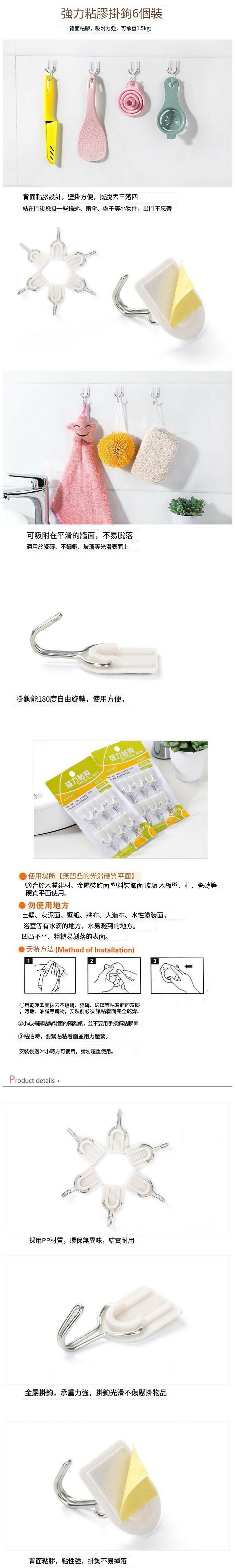 爆款6個裝創意掛鉤 門後無痕粘鉤