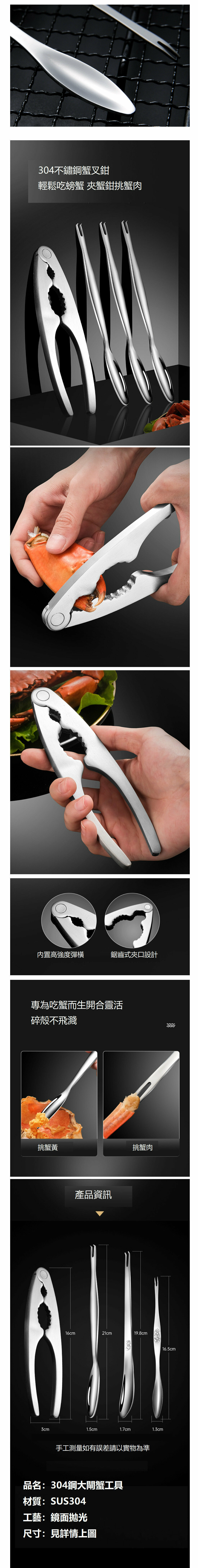 新款6件裝不銹鋼【規格5支304蟹叉加夾子】吃蟹工具套裝 蟹夾 開蟹殼鉗 食龍蝦鉗 廚房用品