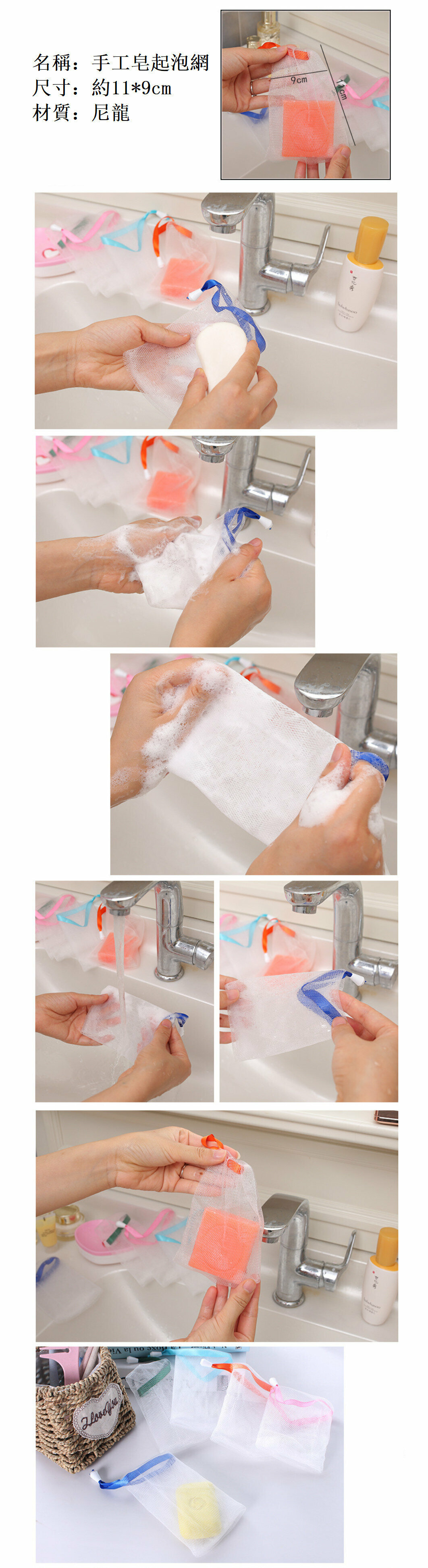 激抵(6個)皂袋/ 起泡袋/ 肥皂袋/手工皂起泡網 (顏色隨機)