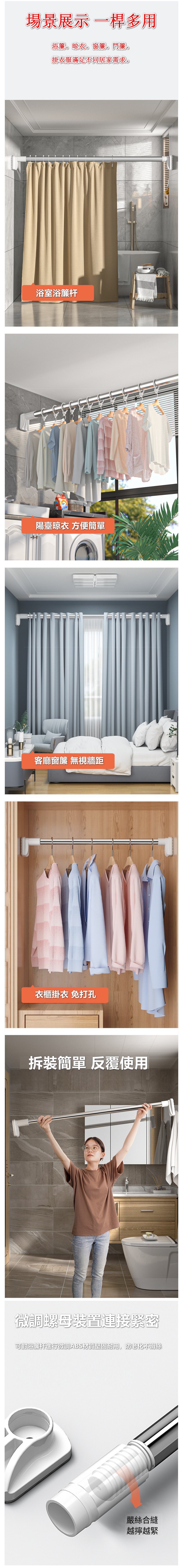 激抵[70-120cm] 32mm超粗超厚免打孔不銹鋼伸縮桿 晾衣桿 曬衣桿 晾衣棍 窗簾桿 浴簾桿 - 1支