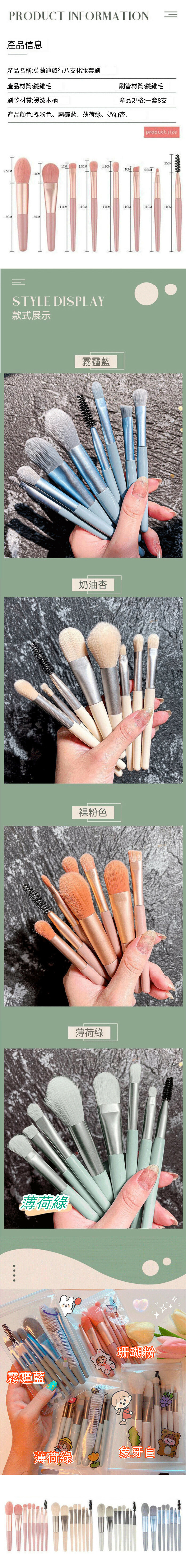 爆款8支化妝掃套裝【薄荷綠+PVC收納袋】