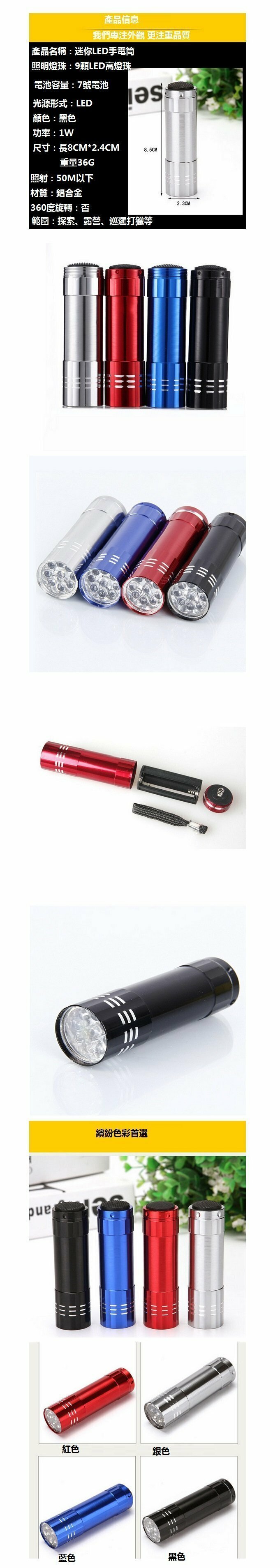 爆款9LED鋁合金手電筒(單支)(銀色 silver)