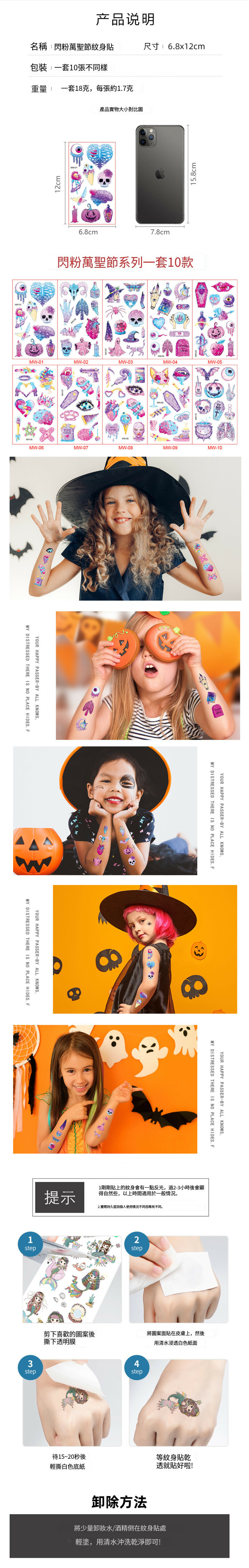 激抵(一套10款)閃粉萬聖節紋身貼閃光貼紙(萬聖節閃粉系列)