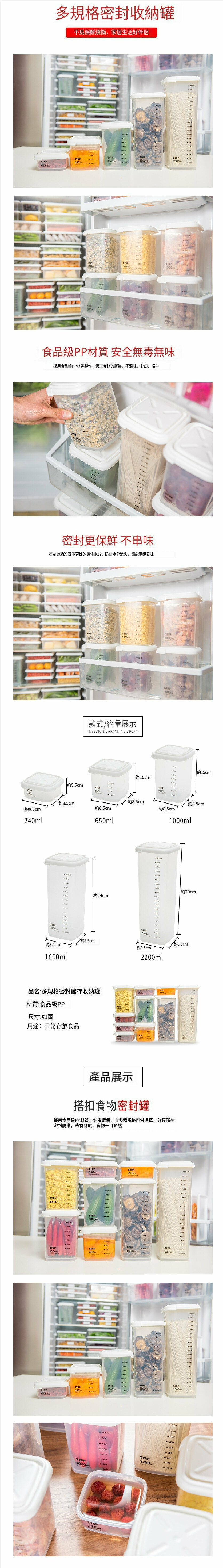 熱賣【一套四件】【規格650ml ,1000ml ,1800ml, 2200ml】方形有刻度食物保鮮密封盒 透明密封盒 收納儲物罐 保鮮盒 零食收納盒 五穀雜糧密封罐 防潮罐 桌上收納罐 廚房用品