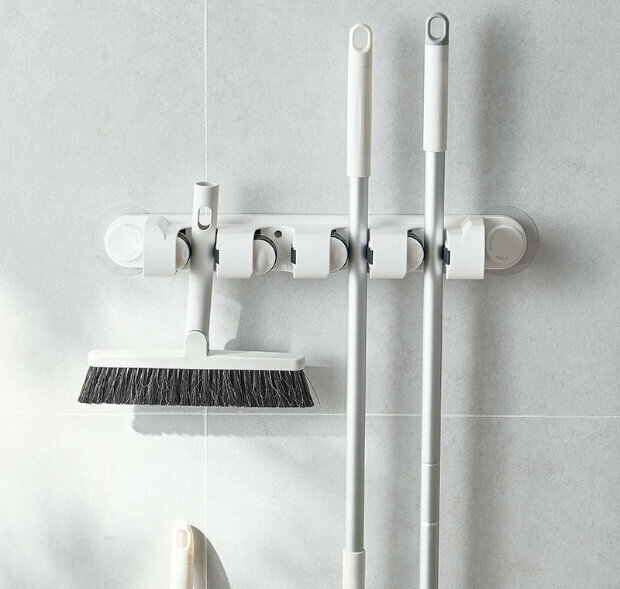 熱賣無痕貼免打孔四連掛架 拖布夾(白色)(尺寸45cm*7cm)