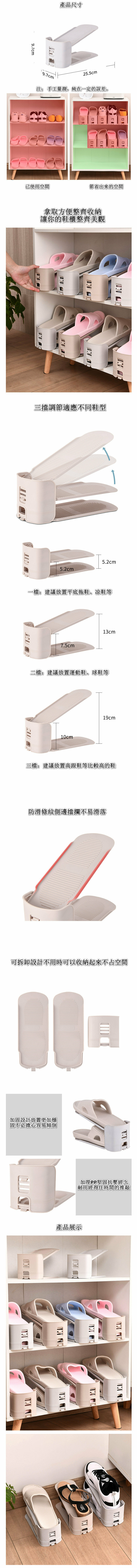 熱推可調節收納鞋架(灰色)