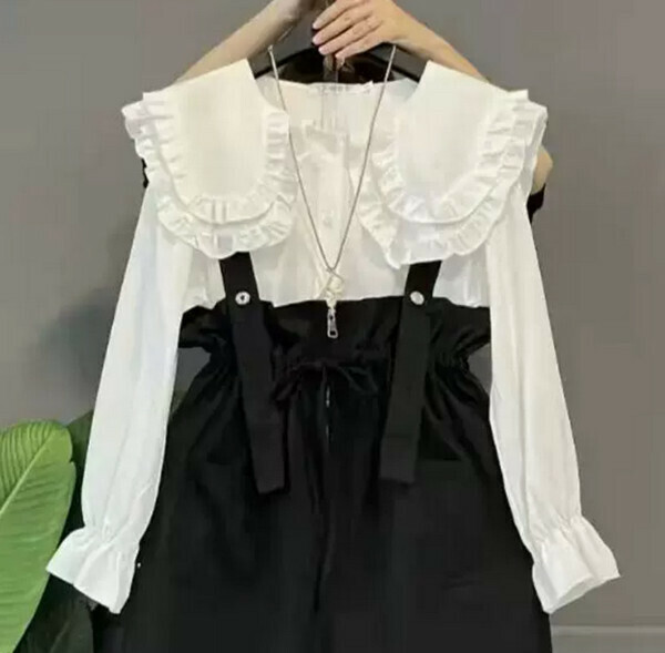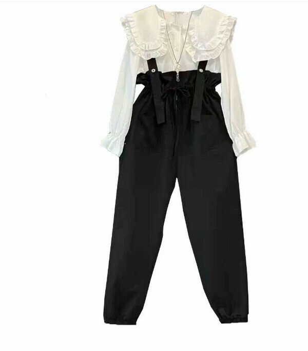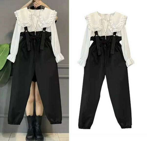 爆款減齡背帶褲#單件(黑色)(M-4XL碼) (下單後聯系客服確認尺碼)