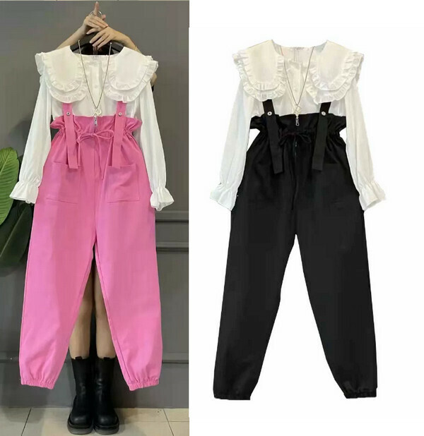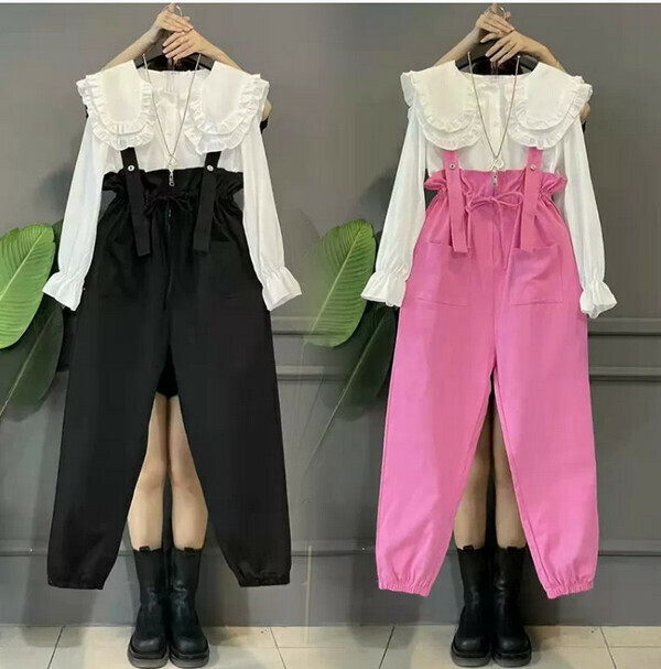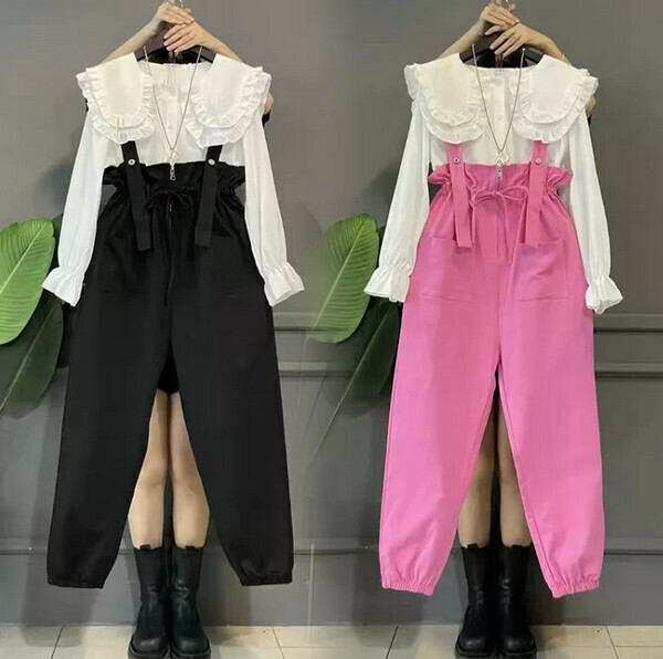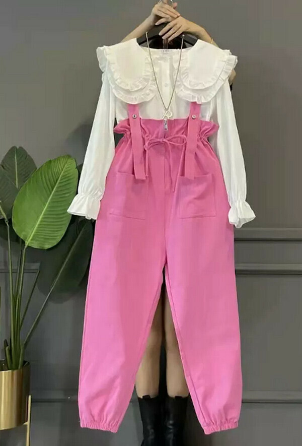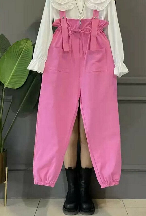 爆款減齡背帶褲#單件(粉色)(M-4XL碼) (下單後聯系客服確認尺碼)