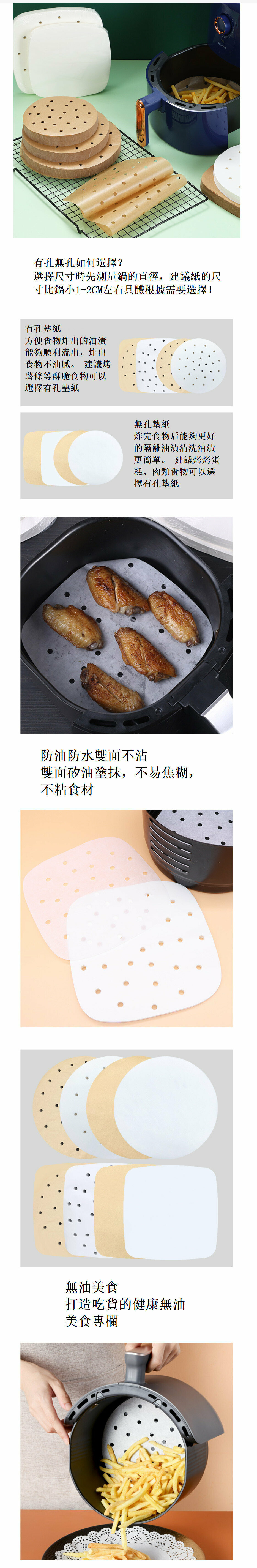 新款氣炸鍋圓形墊紙 -【規格圓形18cm(有孔)100張 顏色白色】
