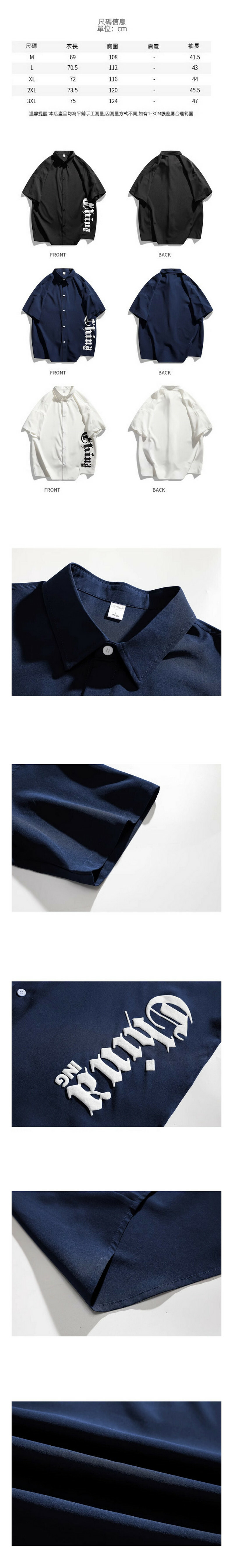 爆款字母短袖襯衫(黑色)【M-3XL碼】【下單後聯絡客服確認發貨尺碼】