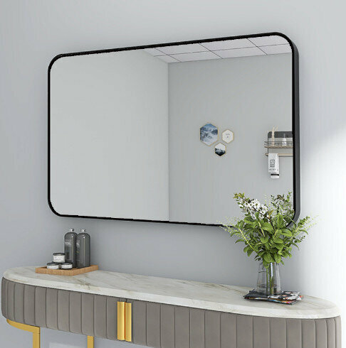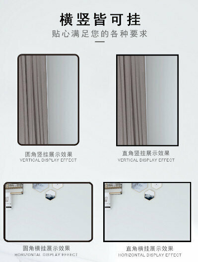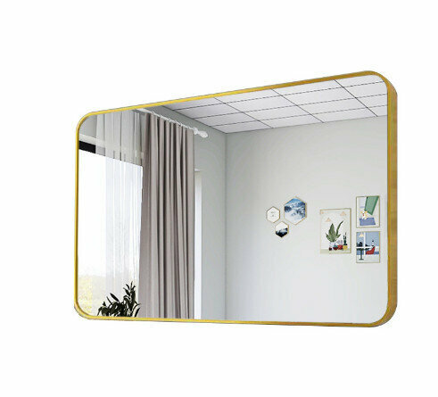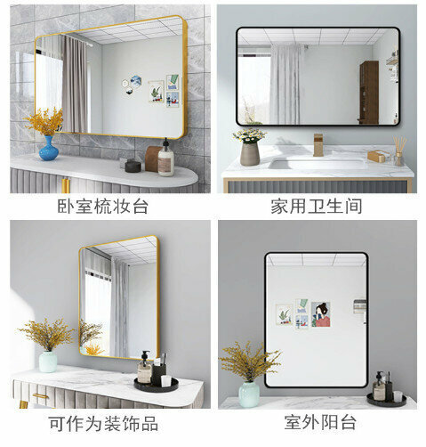 爆款鋁合金浴室衛生間掛牆鏡子(橫掛豎掛加厚合金直角拉絲金750mm*1000mm)