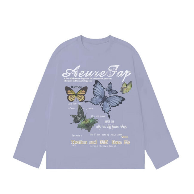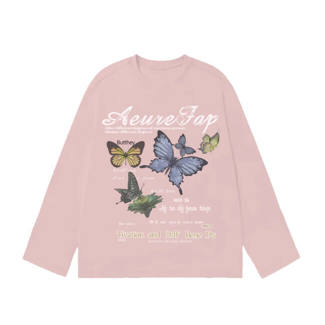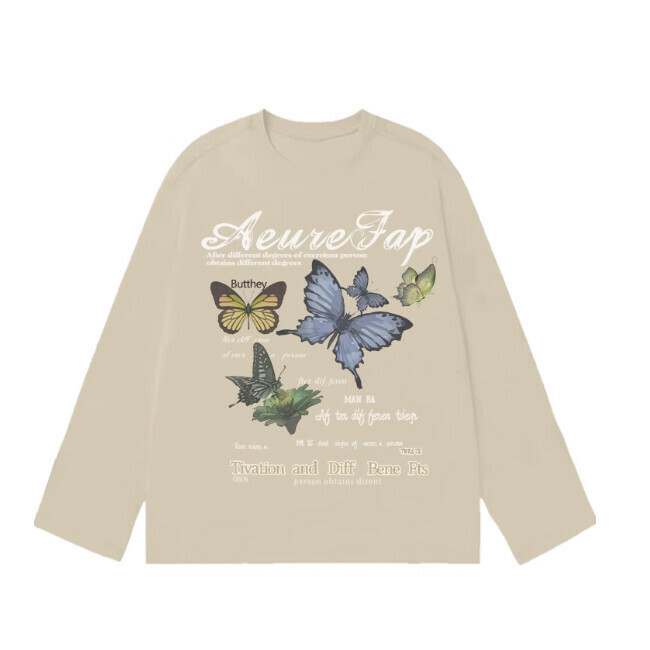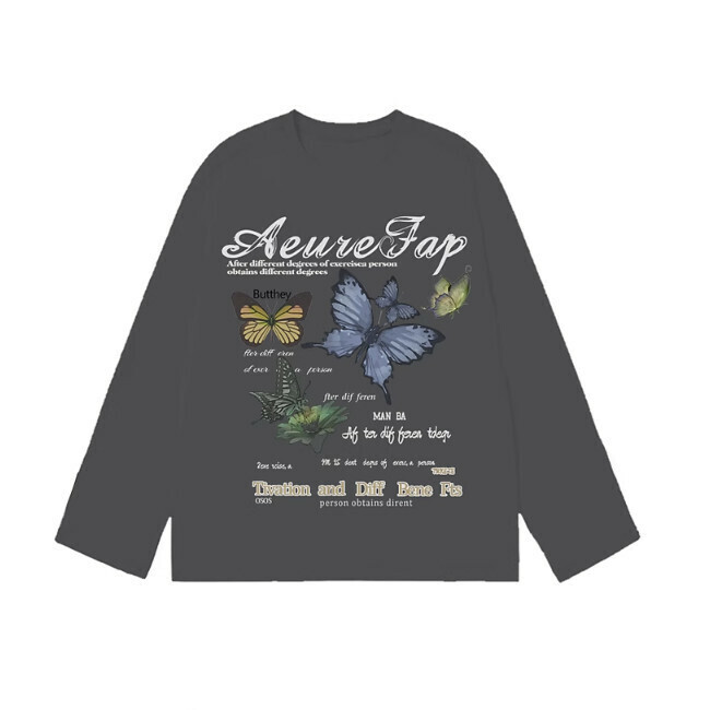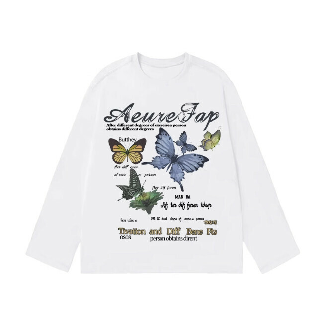 美式黑白設計感蝴蝶印花長袖T恤