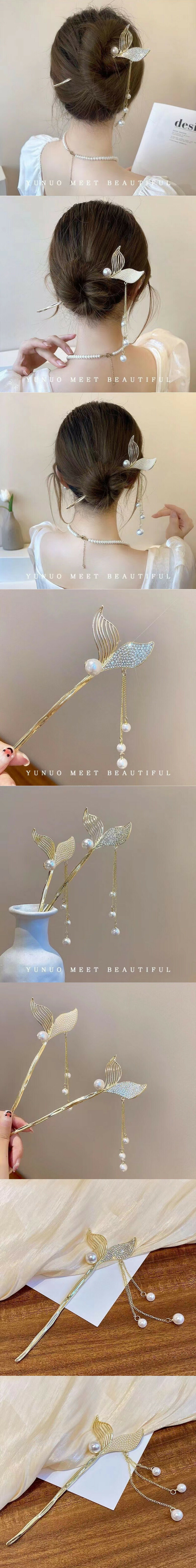 爆款古風美人魚尾發簪 流蘇簪子【B23水鑽魚尾發簪】
