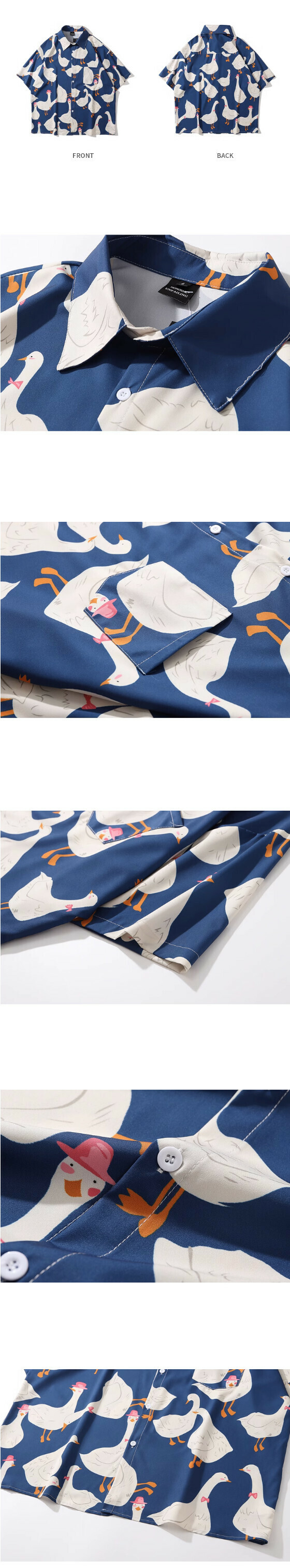 爆款動物滿印短袖襯衫(淡藍色)【M-XL碼】【下單後聯絡客服確認發貨尺碼】