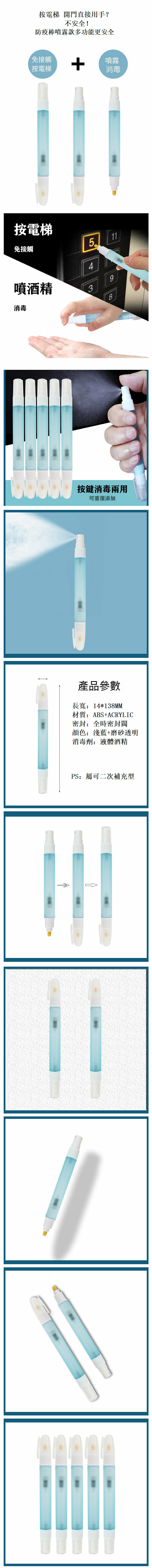 熱推防菌電梯按鍵門柄開關小神器消毒噴霧噴樽一筆兩用【噴按筆 藍色 未入酒精】