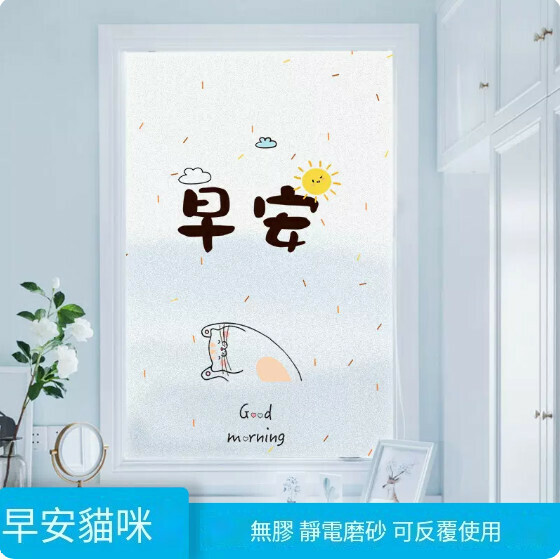 爆款防走光玻璃貼(MS1101早安貓咪-50x90cm )