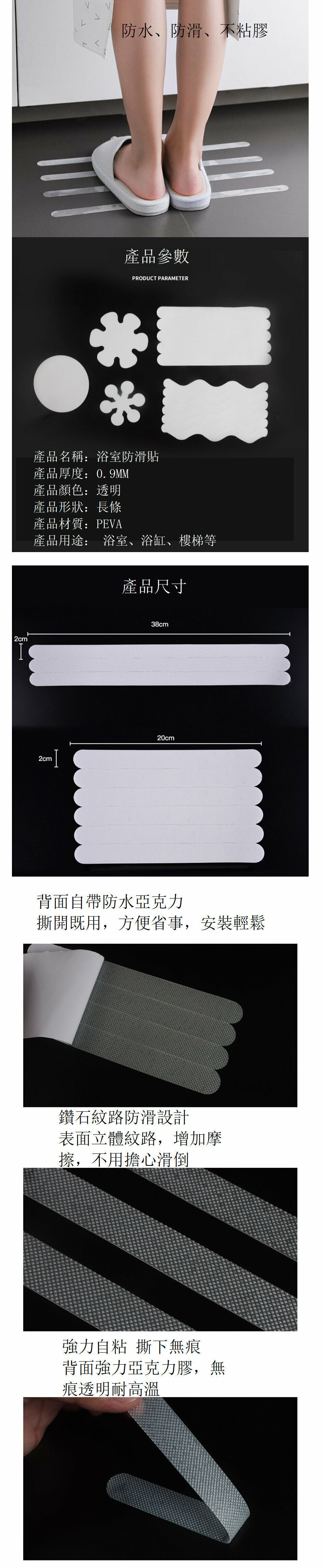 激抵浴室,樓梯專用防滑膠條(6片裝)(透明)防滑條【規格2*20cm】