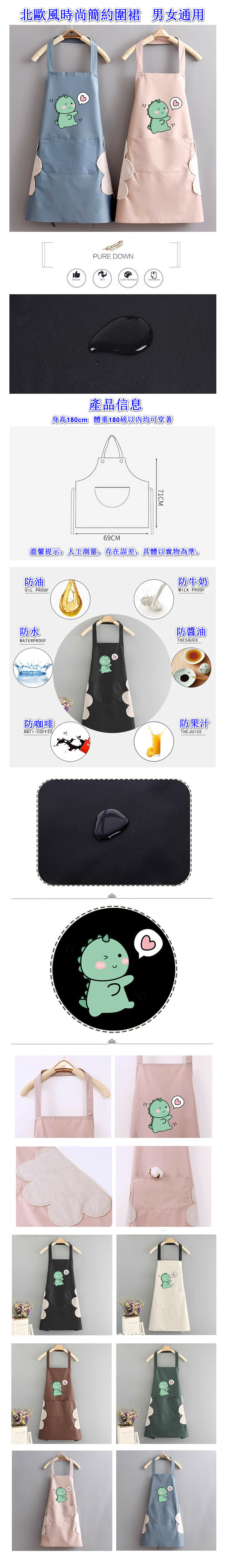 激抵圍裙【擦手防水掛脖恐龍心純粉色】【規格:69*71CM】