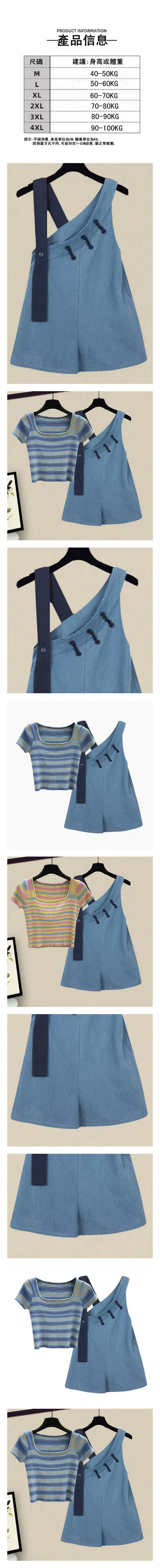 熱推不對稱背帶褲#單件(藍色)(M-4XL碼) (下單後聯系客服確認尺碼)