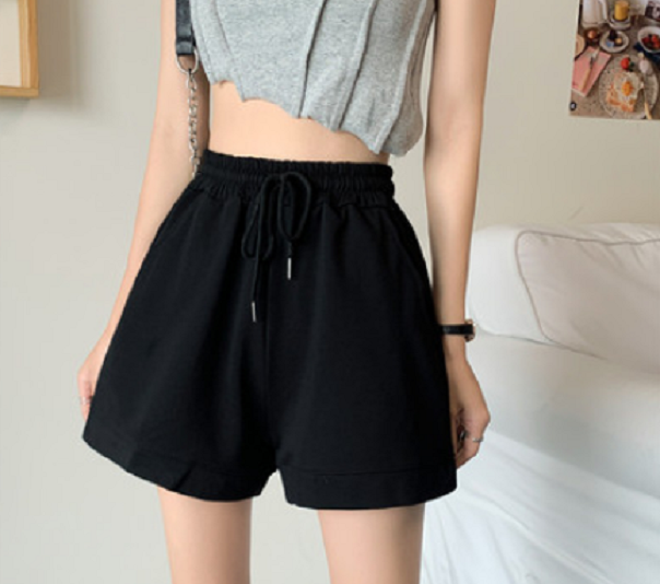 爆款運動直筒闊腿褲薄款休閑短褲(黑色)(尺碼:M-XL)(下單後聯絡客服確認發貨尺碼)】
