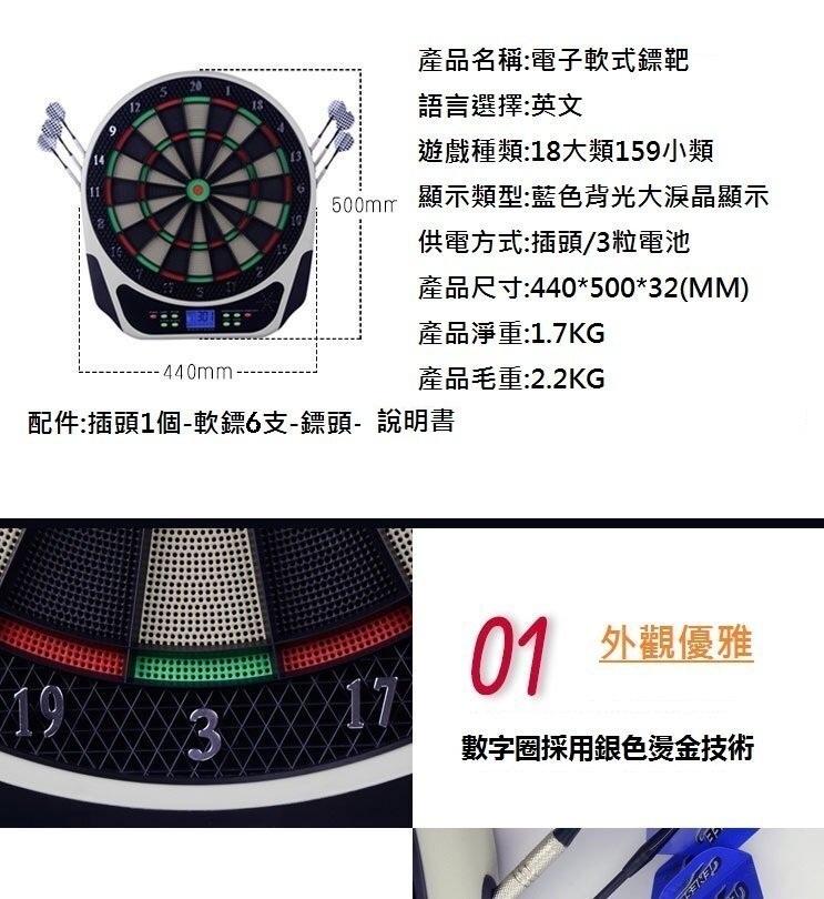 激抵自動計分電子飛鏢機(黑色 軟標 6支 款式顔色隨機)